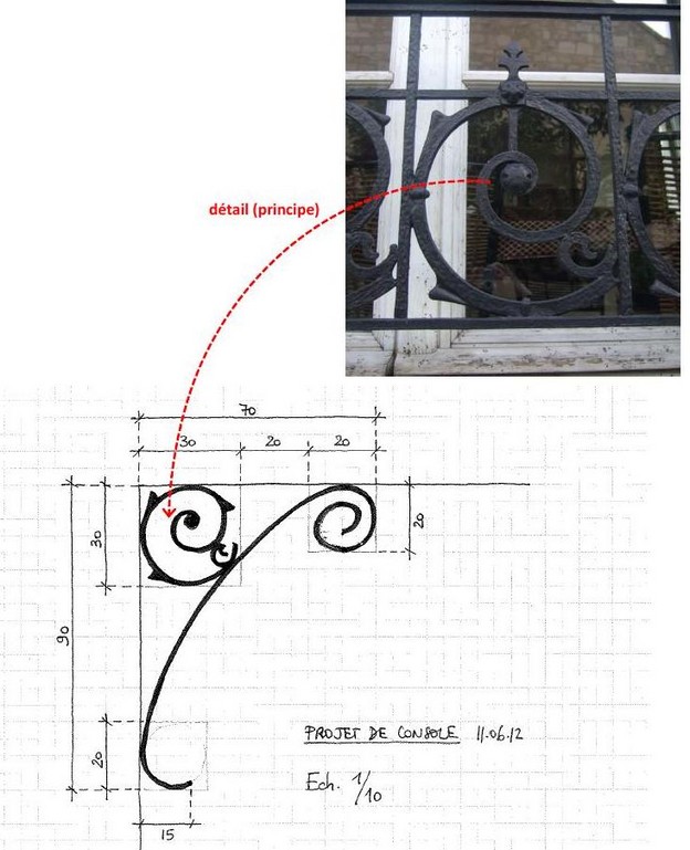 ici reproduction d'une partie de l'appuis de fenêtre, pour la confection de la consoles